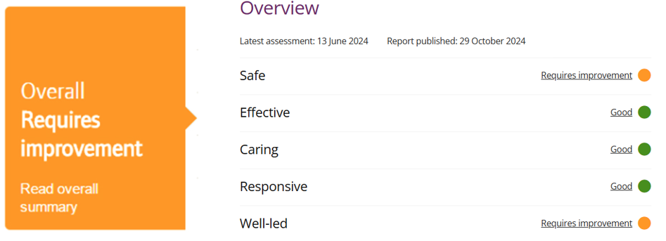 We are inspected and rated by the CQC in line with national regulatory standards.